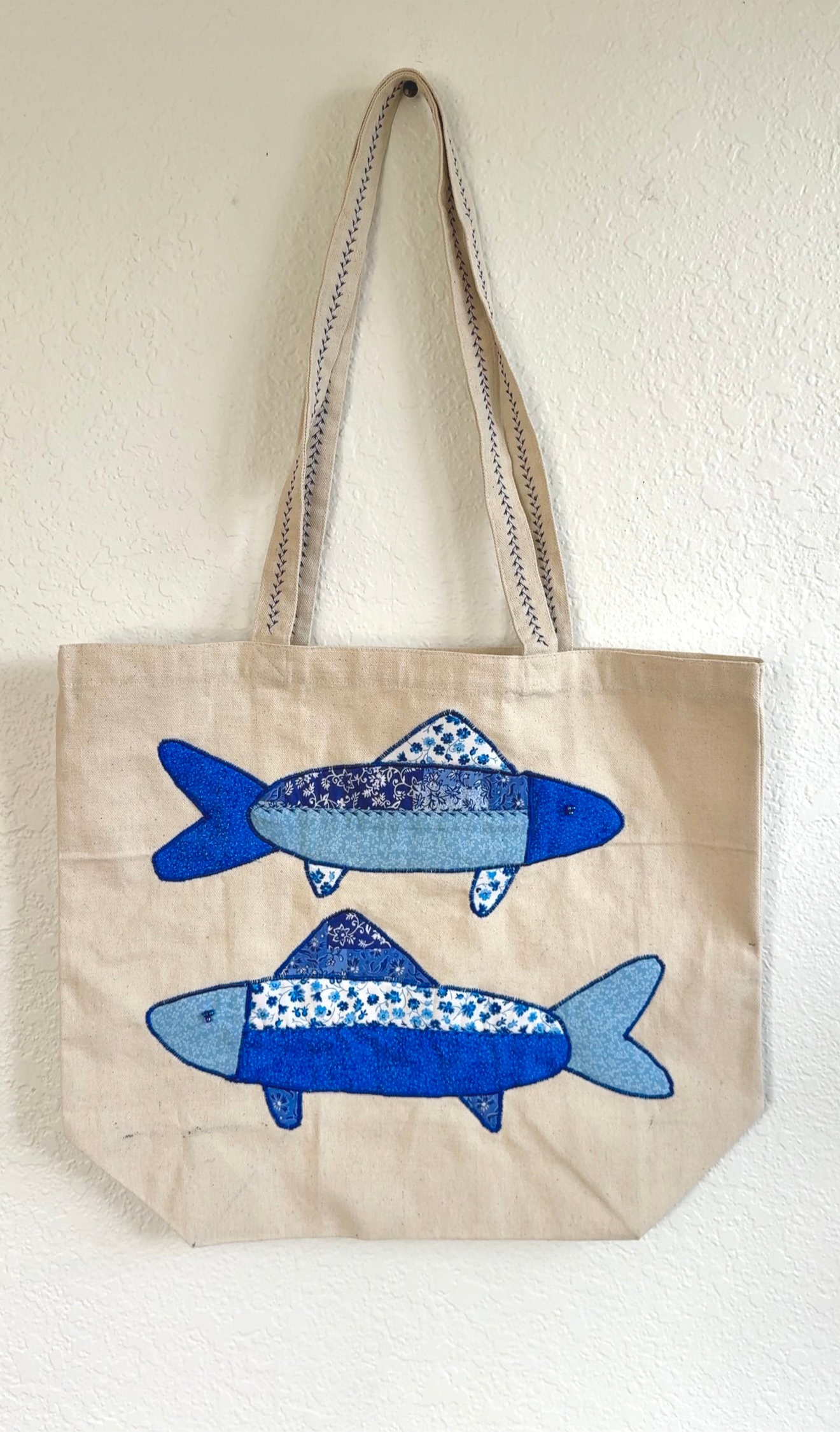 • heavy canvas tote with fish applique